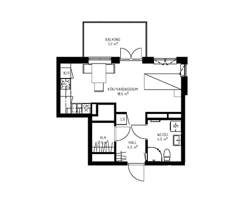 Vardagsrum/allrum med plats för både umgänge och vila. Utgång till balkong.