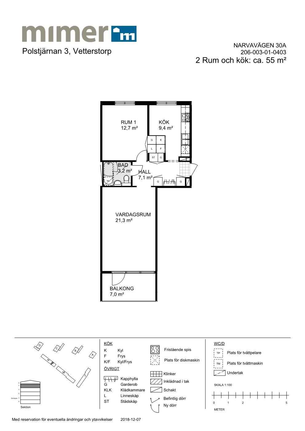 2 rm. apartment of 55 m²