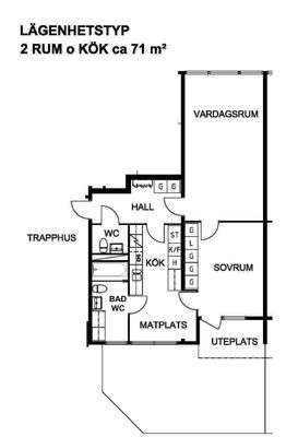 2 rm. apartment of 71 m²