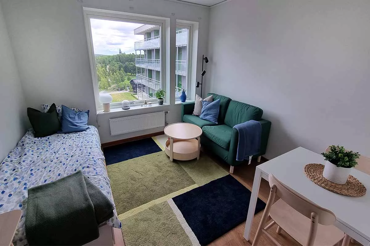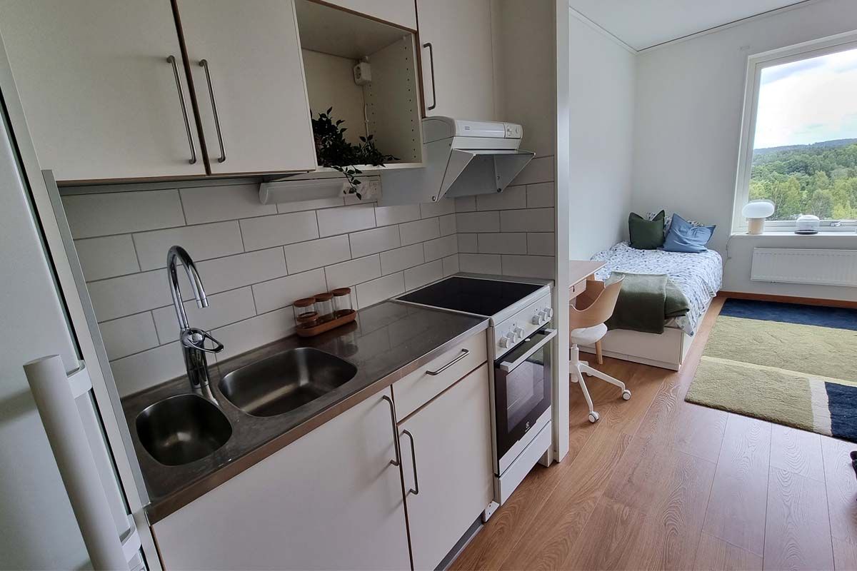 Välkommen till Slottsstaden! Vi erbjuder ett studentbostadsområde med välplanerade studentbostäder precis intill Linnéuniversitetet. Fantastiskt läge i direkt anslutning till campus, vackra grönområden och Teleborgs slott. Här väljer du mellan att bo i egen lägenhet med badrum och kökspentry eller i eget rum i en lägenhet för två med gemensamt badrum, kök och vardagsrum. Till din närmaste matbutik är det två kilometer och 150 meter till närmaste busshållplats. Växjö centrum når du på en kvart med cykel. Här bor du i en välplanerad studentlägenhet precis intill Linnéuniversitetet. Hall med garderob och städskåp. Kök utrustat med kyl, frys och spis med ugn. Badrum med toalett och dusch. Lägenheten har 10-månadershyra som inkluderar bredband, värme, vatten och hushållsel. Njut av ett eget hem i en studentstad, upplev gemenskapen och ta del av studentlivet även när studierna sker på distans.