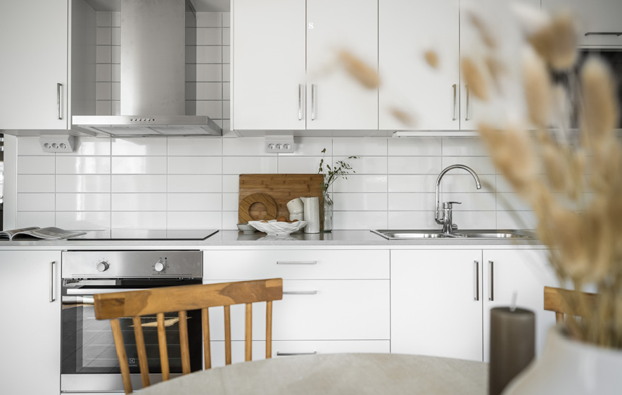 Badrummen är kaklade och utrustade med tvättmaskin och torktumlare. Hallen har klinker och i köket finns diskmaskin och spis med induktionshäll, allt du behöver för ett bekvämt boende.