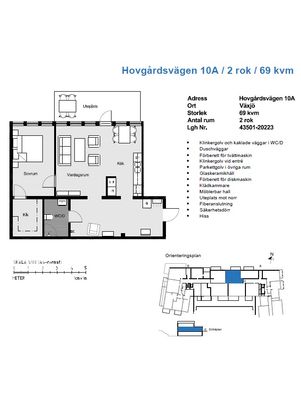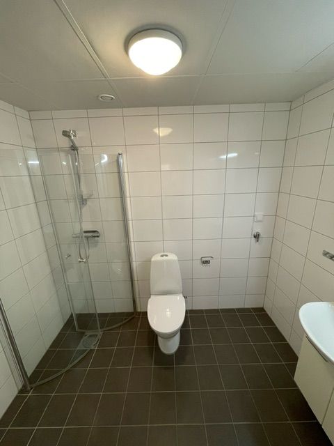 Lägenheten har genomgående parkettgolv och en praktisk klädkammare. Helkaklat badrum med duschväggar i glas och det är förberett för tvättmaskin och torktumlare.