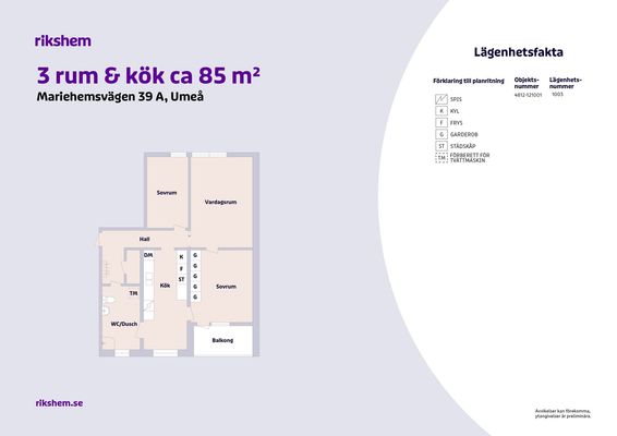 3 rm. apartment of 85 m²
