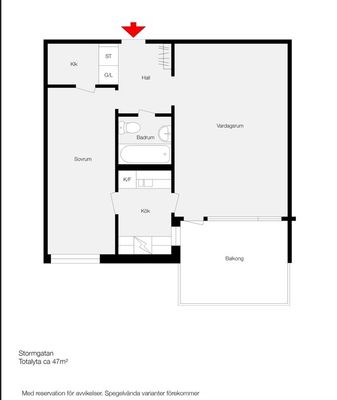 2 rm. apartment of 47 m²