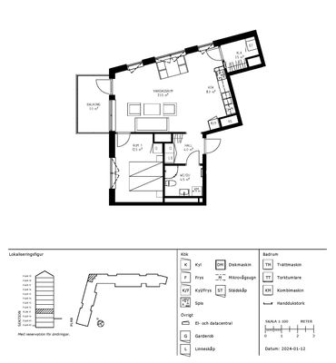 3 rm. apartment of 64 m²