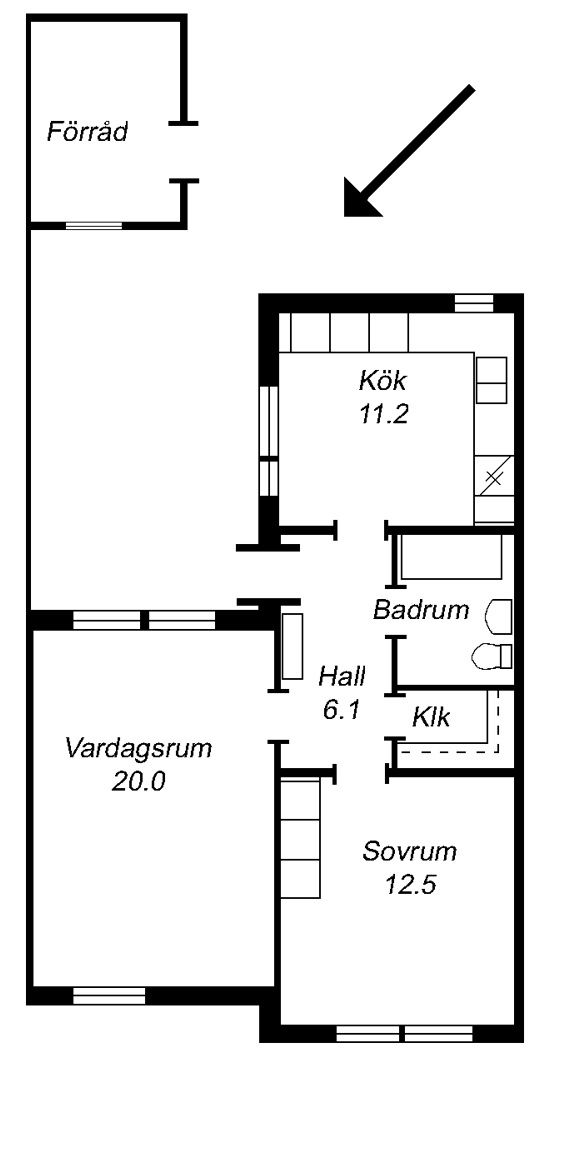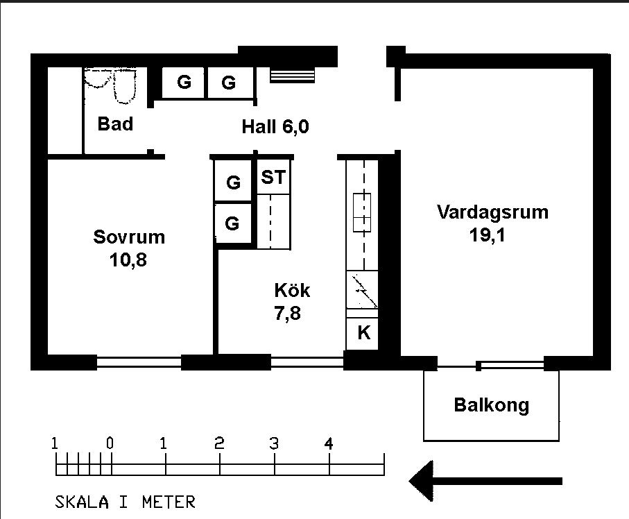 2 rm. apartment of 59 m²