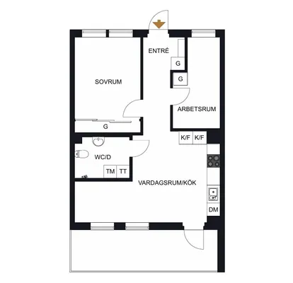 1 rm. apartment of 34 m²