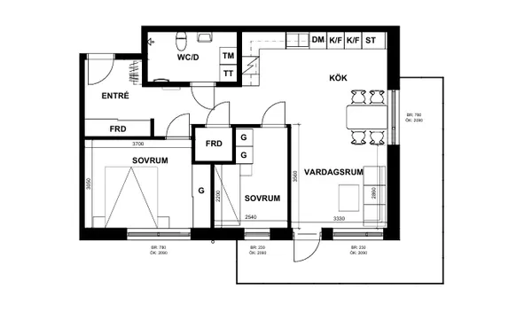 2 rm. apartment of 84 m²