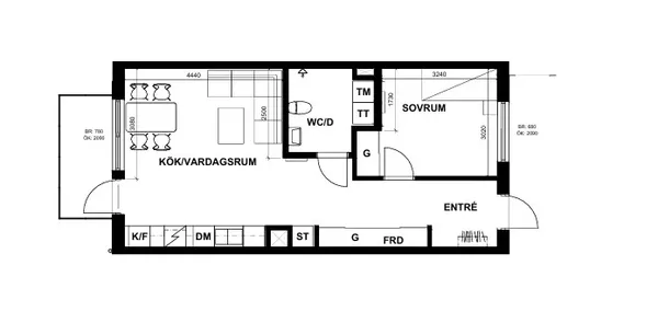 2 rm. apartment of 52 m²