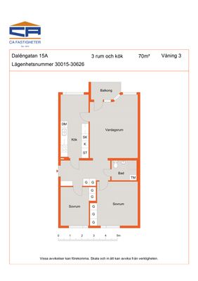 3 rm. apartment of 73 m²