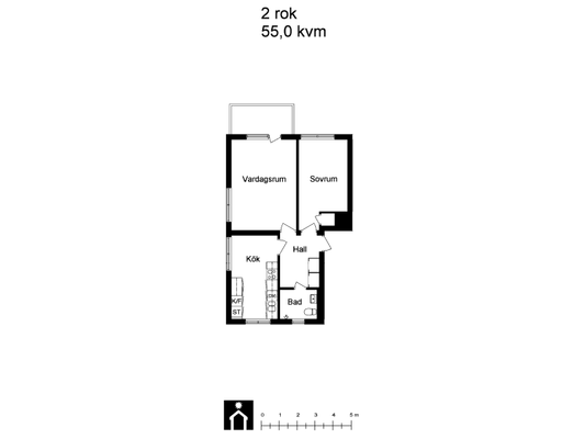 2 rm. apartment of 55 m²