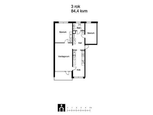 3 rm. apartment of 84 m²