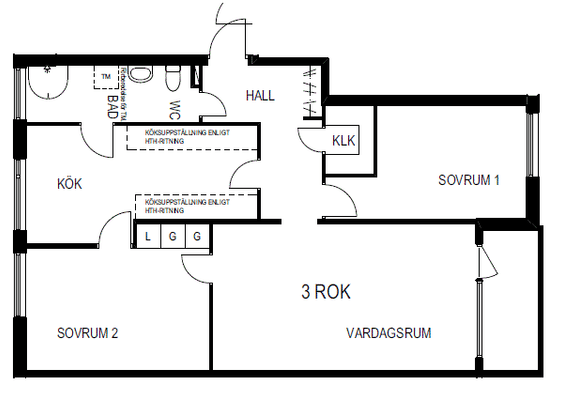 3 rm. apartment of 84 m²