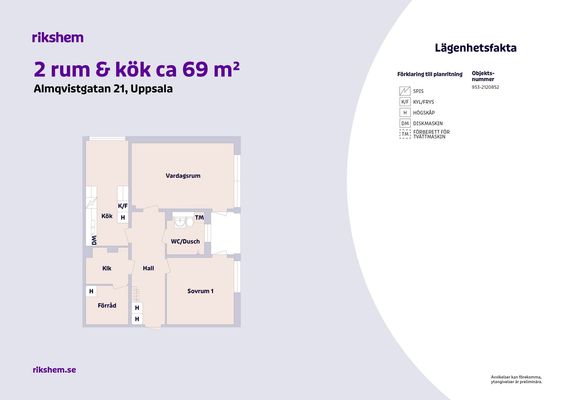 2 rm. apartment of 69 m²