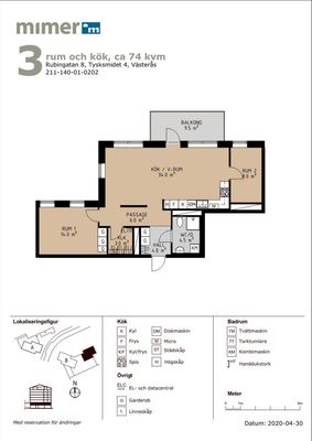 3 rm. apartment of 74 m²