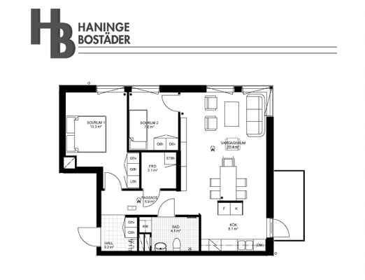 2 rm. apartment of 54 m²