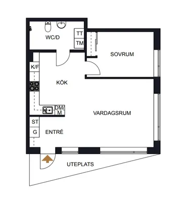 1 rm. apartment of 24 m²