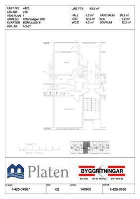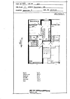 2 rm. apartment of 64 m²