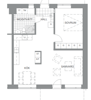 1 rm. apartment of 34 m²