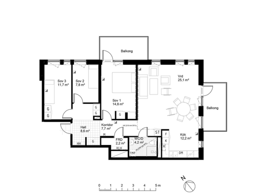 3 rm. apartment of 77 m²