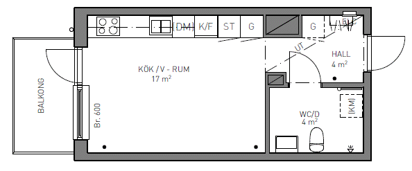 1 rm. apartment of 26 m²