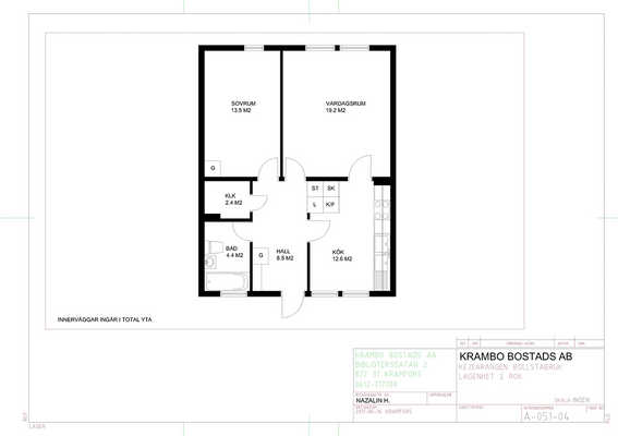 2 rm. apartment of 64 m²