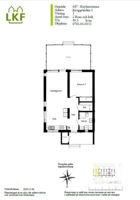 2 rm. apartment of 59 m²