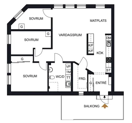 3 rm. apartment of 76 m²