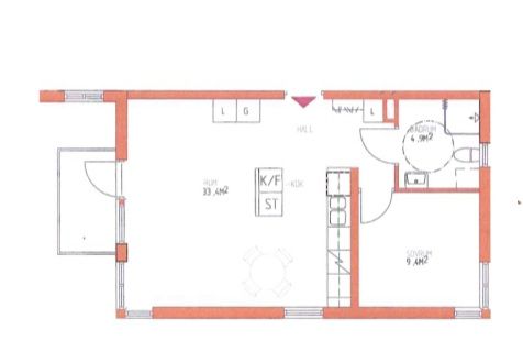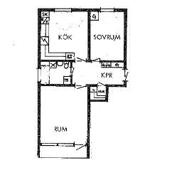 2 rm. apartment of 43 m²