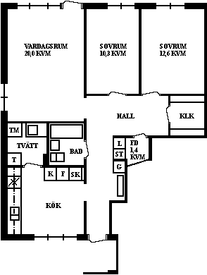 3 rm. apartment of 85 m²