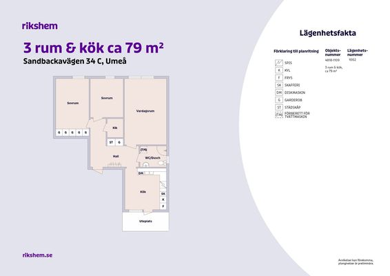 3 rm. apartment of 79 m²