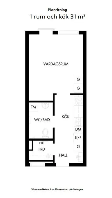 1 rm. apartment of 31 m²