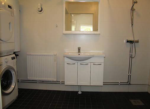 - Badrum med toalett, dusch, tvättmaskin och torktumlare