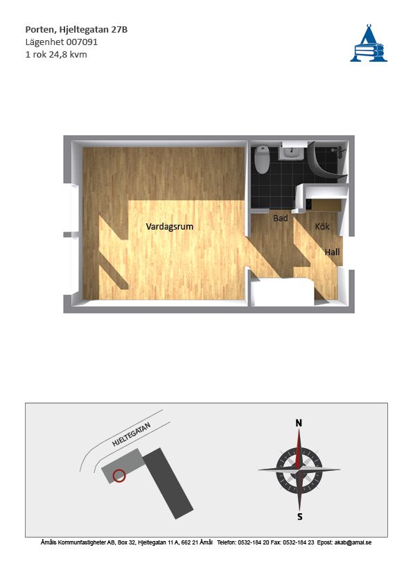 1 rum lägenhet på 25 m²