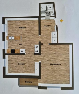 3 rum lägenhet på 70 m²