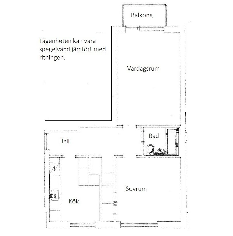 2 rum lägenhet på 63 m²