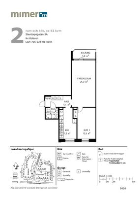 2 rum lägenhet på 62 m²