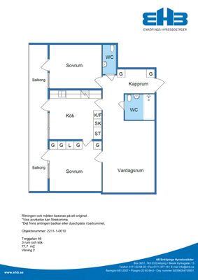 3 rum lägenhet på 77 m²