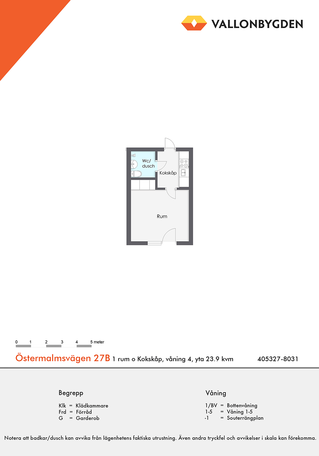 1 rum lägenhet på 31 m²
