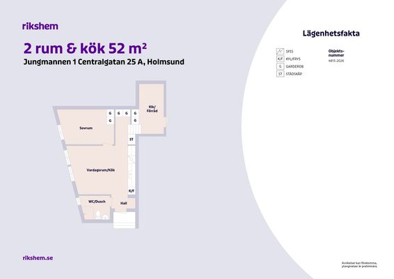 2 rum lägenhet på 52 m²