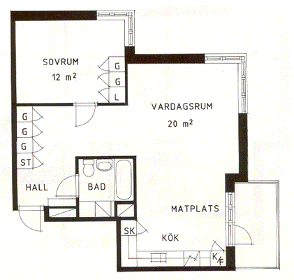 2 rum lägenhet på 44 m²