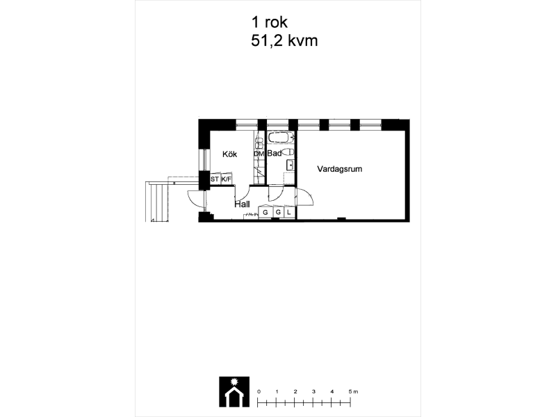 1 rum hus på 51 m²