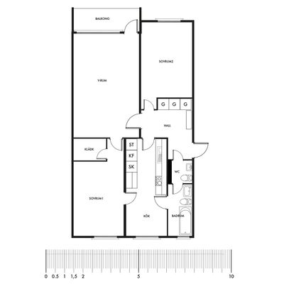 3 rum lägenhet på 73 m²