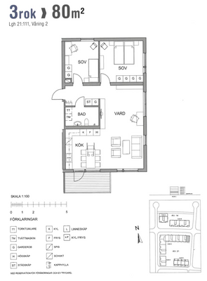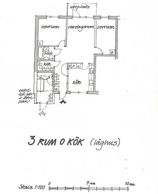 3 rum lägenhet på 80 m²