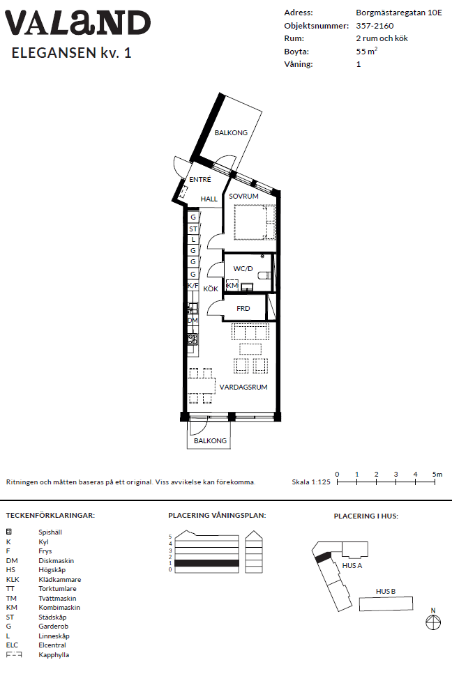 2 rum lägenhet på 55 m²