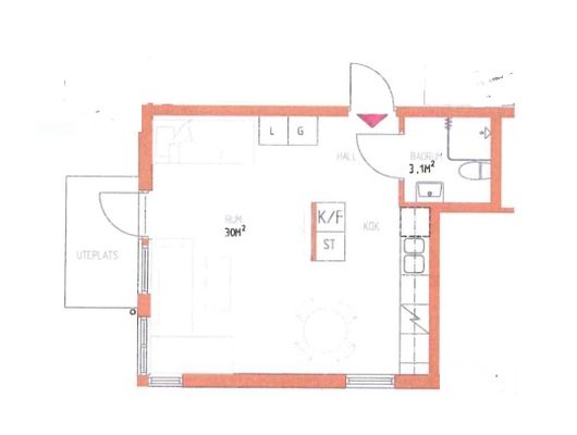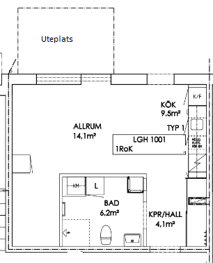 1 rum lägenhet på 33 m²