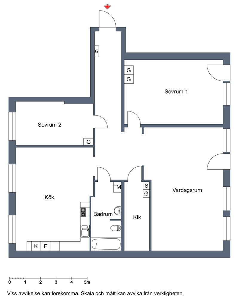 3 rum lägenhet på 77 m²