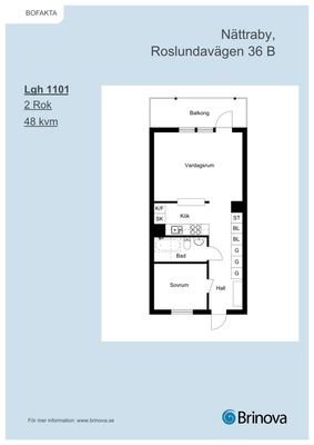 2 rum lägenhet på 48 m²