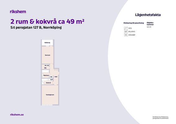 2 rum lägenhet på 49 m²