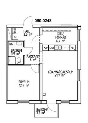 2 rum lägenhet på 56 m²